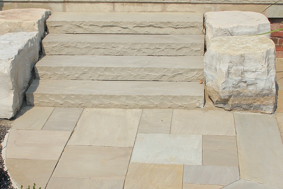 Elevate the visual appeal of your outdoor space with the timeless allure of Raj Green Sandstone Block Steps. Perfect for enhancing both front and backyard areas, these natural stone steps bring a classic elegance to your landscape.